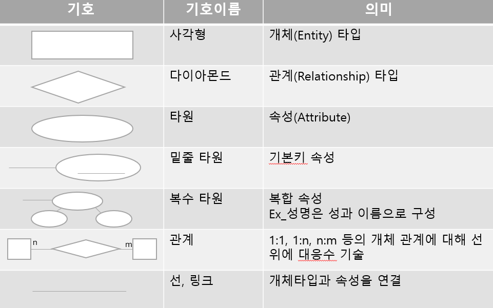 - 현실 세계를 데이터베이스에 표현하는 중간 과정, 즉 데이터베이스 설계과정에서 데이터의 구조를 표현하기 위해 사용되는 도구
