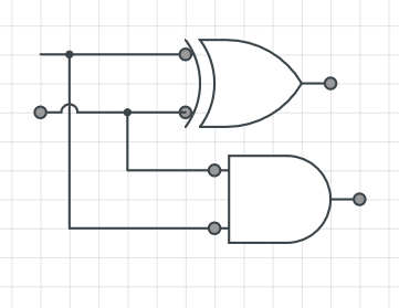 - 논리식 : C=AB S=A' B+AB' = A⊕B