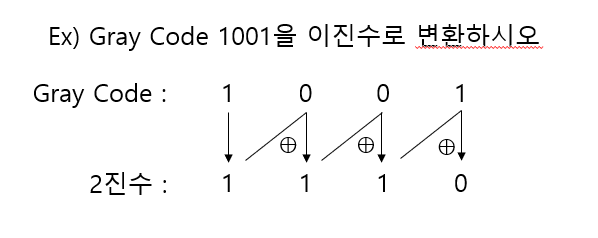 ② 2번째 2진수 비트부터는 왼쪼게 구한 그레이 비트와 변경할 해당 번째 2진수 비트를 XOR연산하여 씀