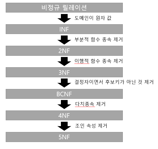 ● 이상(Anomaly) : 정규화를 거치지 않은 데이터베이스 내에 데이터들이 불필요하게 중복되어 릴레이션 조작 시 발생하는 예기치 못한 곤란한 현상